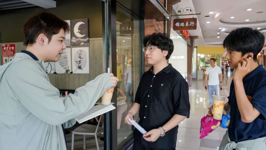 抵达学校附近的商圈后,同学们按照预先分组,迅速散开在各个区域,开启了“情绪大搜索”。